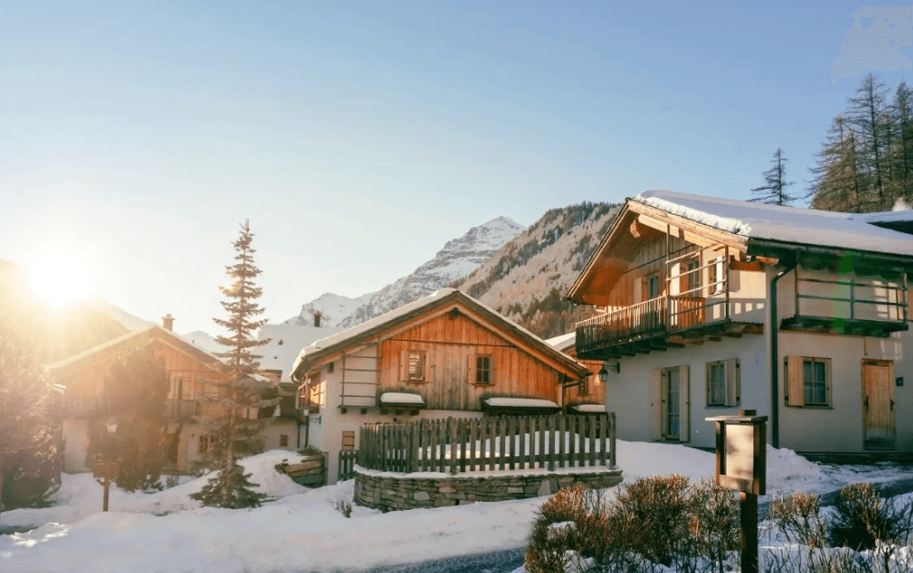 Ski the Italian Alps from a cosy hamlet of wooden chalets.